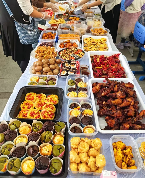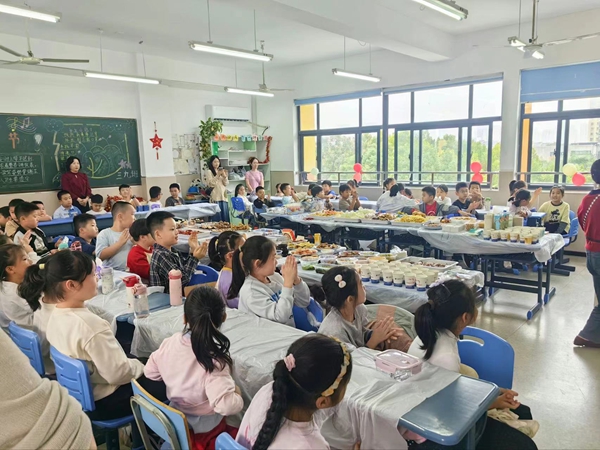 随后的美食分享环节将活动氛围推向高潮。尤为值得一提的是,桌上的每一份美食食材均由同学们从家中精心带来,既蕴含了家长们的深情厚意,也寄托了孩子们对集体活动的热切期待。大家围坐在一起,分享美食、交流趣事,教室里满是欢声笑语,孩子们在品尝美味的同时,也感受到了集体生活的温暖与快乐。