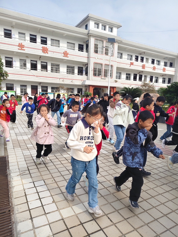 上午9时02分,随着急促的警报声划破校园,消防演练正式启动。各班级学生在班主任和任课老师的引导下,迅速做出反应:同学们用湿毛巾(或衣角)捂住口鼻,弓着身子,按照预定疏散路线,快速、有序地向操场空旷地带撤离。整个过程中,师生配合默契,行动迅速,仅用时2分30秒,全校600余名师生便全部安全抵达指定区域。