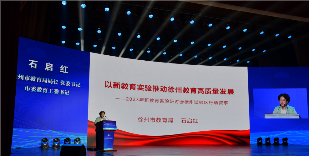 徐州市教育局局长石启红以《以新教育实验推动徐州教育高质量发展》为题进行经验交流。她指出:全市教育系统践行新教育“过一种幸福完整的教育生活”核心理念,坚持项目驱动、融合推进,加快建设高质量教育体系,教育教学质量大幅攀升,教育格局面貌显著优化。一是坚持优质均衡,夯实新教育实验的基础。扩大资源促均衡,建强队伍激活力,创新师德师风评价办法,改革教师专业成长体系,完善教师发展保障机制,创新机制保公平。二是坚持融合推进,拓宽新教育实验的路径。注重顶层设计,出台《徐州市新教育实验实施方案》《徐州市新教育学校建设指导意见》等文件。注重榜样示范,遴选首批全市新教育实验优秀单位55个、先进个人110名,评选智慧校长、榜样教师、完美教室、卓越课程。注重项目驱动,开展营造书香校园、培养卓越口才等市级十大行动专项培训10次,县(市、区)举办了6场学习交流和现场推进会。注重融合推进,以十大行动为抓手,多轮培训,通过现场会示范引领、项目组领衔深耕,推动新教育实验高开高走。注重创新发展,探索校园建设、教师培养、学校引领、媒体合作的新路径。三是坚持特色发展,创生新教育实验的样态。全力推动“新生命教育”,筹建新生命教育研究与指导中心,组建新生命教育专家库、师资库,出台《徐州市新生命教育实施意见》。以专设课程为主导,探索构建学科渗透、专题教育、特色课程、综合实践有机结合的新生命教育机制,构建6大板块、108个主题的教育体系。扎实抓好家校合作共育,出台《“彭城好爸妈”成长工程实施意见》,提出健全工作机制、丰富课程资源、加强科学研究等八项任务。“家长好好学习、孩子才能天天向上”的理念深入人心。完善家校共育工作体系,深入推进“千校万师进家庭”家访活动,培育家校共育骨干力量,丰富家校共育服务资源,创新家校共育激励机制,为加快建设高质量教育体系,努力办好让人民满意的徐州教育作出新的更大贡献。