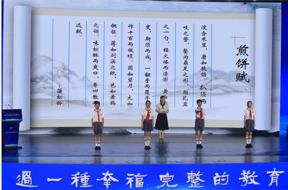 徐州市贾汪区汴塘镇中心小学教师刘玉和学生代表杜峻熙、孙雅婷、程敬贤、杜依霖以《家乡的味道》为题进行交流分享