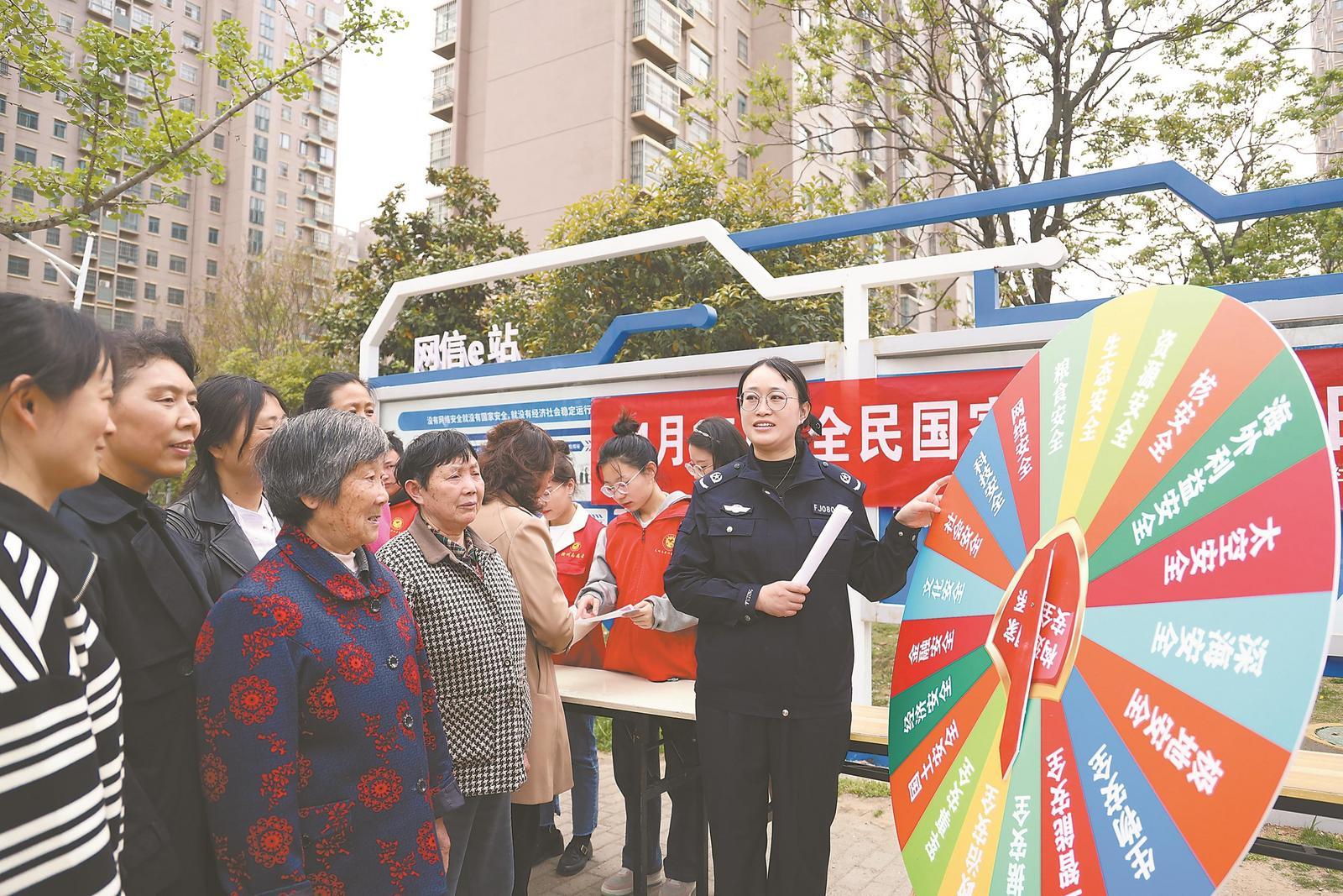 4月13日, 滁州市南谯区发改委联合龙蟠南苑社区等开展国家安全教育主题宣传活动,志愿者通过多种形式向居民宣讲国家安全知识,普及国家安全法律法规。本报通讯员 董 超 摄