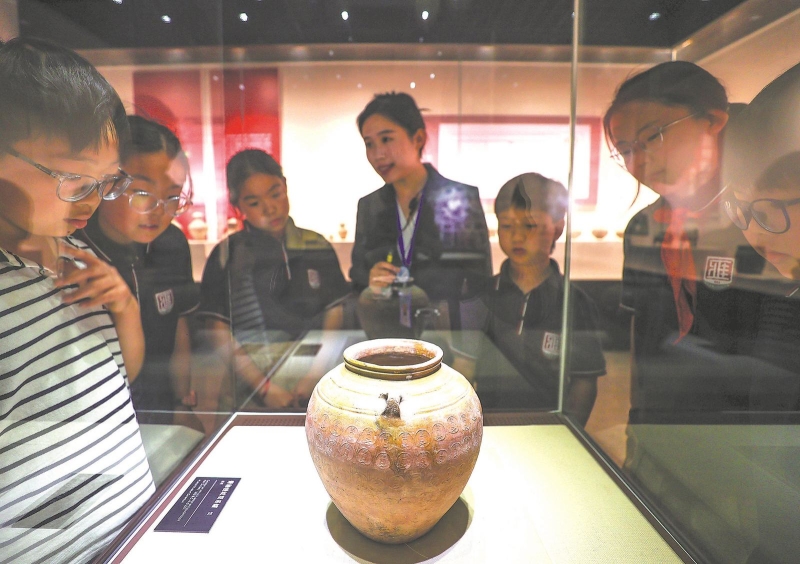 5月15日,在淮北市博物馆展厅,讲解员为学生讲解文物知识,讲述文物故事。“5·18”国际博物馆日前夕,淮北市第一实验小学组织学生走进淮北市博物馆参观学习,帮助学生了解文物知识,感受文物魅力。