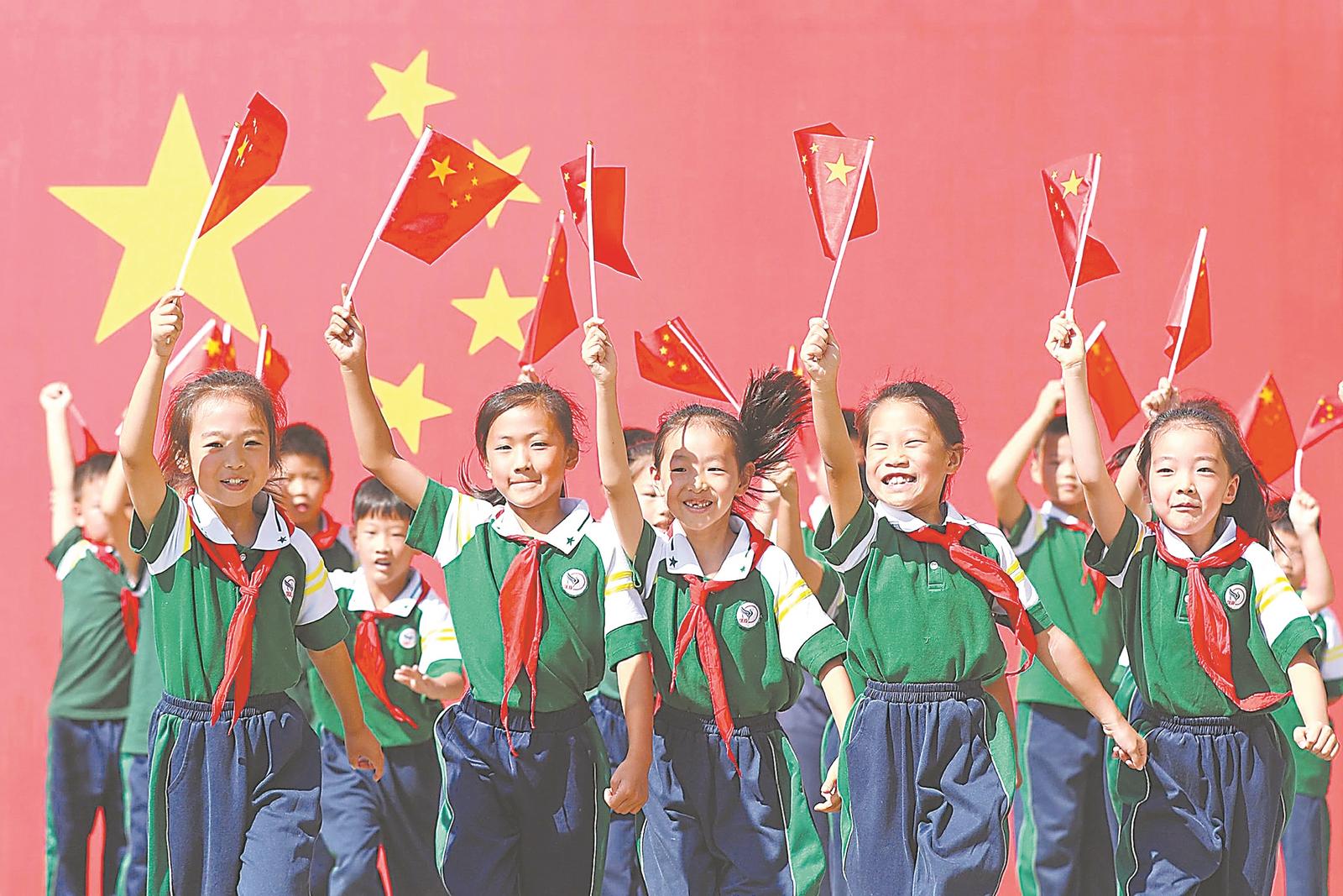 9月24日,淮北市濉溪路小学开展以“祝福祖国迎国庆”为主题的爱国主义教育活动,学生们通过演唱爱国歌曲、与国旗同框等方式,表达对伟大祖国的深切热爱和美好祝福。通讯员 万善朝 摄