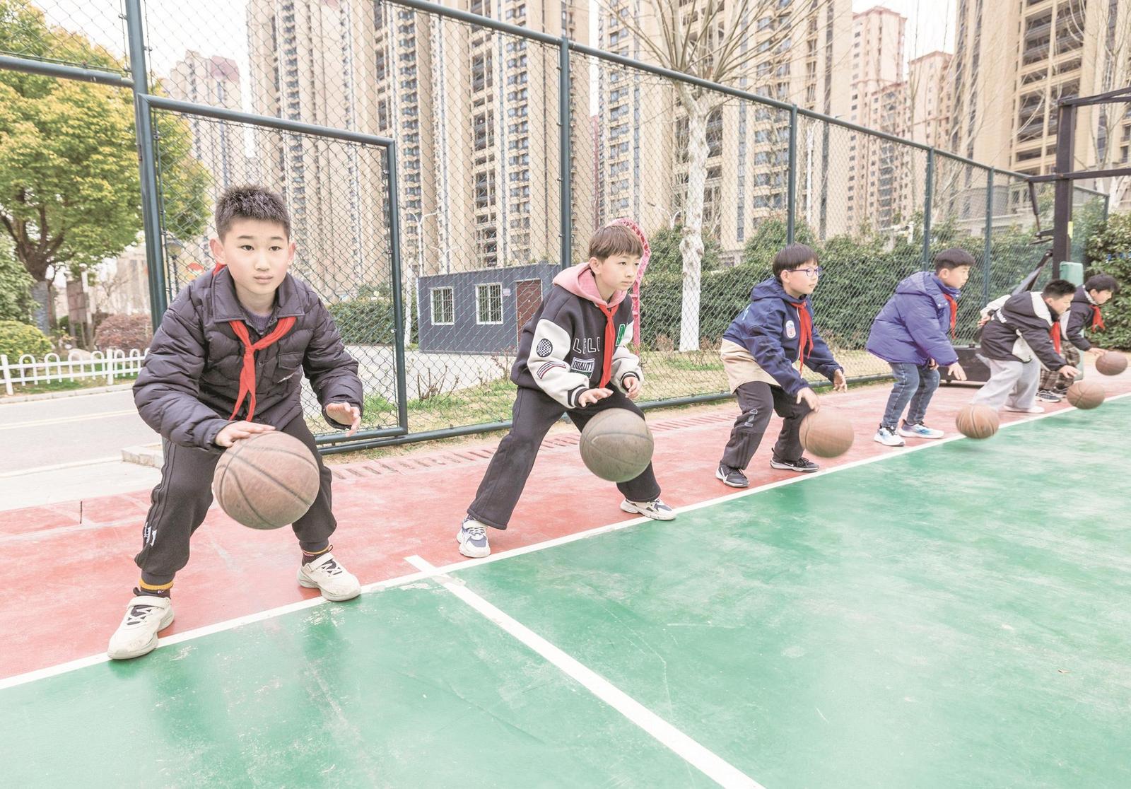 3月17日,在市拂晓小学校园内,学生们正在进行体育锻炼(上图)。今年以来,我市大力实施学校体育高质量发展和学生体质强健行动,全面落实课间15分钟,深入推进义务教育阶段学校每天开设一节体育课,保障学生课间正常活动及体育活动时间,让孩子们在游戏中释放天性,促进学生德智体美劳全面发展,真正实现让快乐“加码”、为学业“减负”。 记者 马峰 苏洋 摄